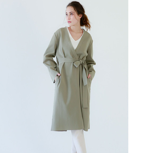 高級感のあるジャージーなニット素材のローブ。いわゆる”ニット”とは違い、表面に毛あしがなくハリのある感触のふんわりやわらかなニットとは一線を置くカーディガンになっています。アクリルやウールではなくポリエステルなので毛玉になりにくく、水にも強いのでケアがとても楽。シワもできにくいので1日中着用してもひじやおしりの部分がシワになりにくいです。ハリ感があるのでジャケットのような感覚できれい目な着こなしができます。(ジャケットではないです!)でもジャケットよりも軽く伸縮性もあるため着心地が良いです。肌に張り付かないさらっとした生地なので梅雨の時期にも重宝します。デイリーで使ってもホームクリーニングができるのも嬉しいポイントです。(お洗濯の際はネットに入れて下さい。脱水の際は弱めにしぼってください)日本製の精巧な作りで大人の女性でも納得のいくクオリティに仕上がっています。肌なじみのいい淡いオリーブカラーで春先にはもちろん、秋に移り変わる時期にも登場させたくなるような色味にもこだわりました。 マージュール/marjour トップス|カーディガン