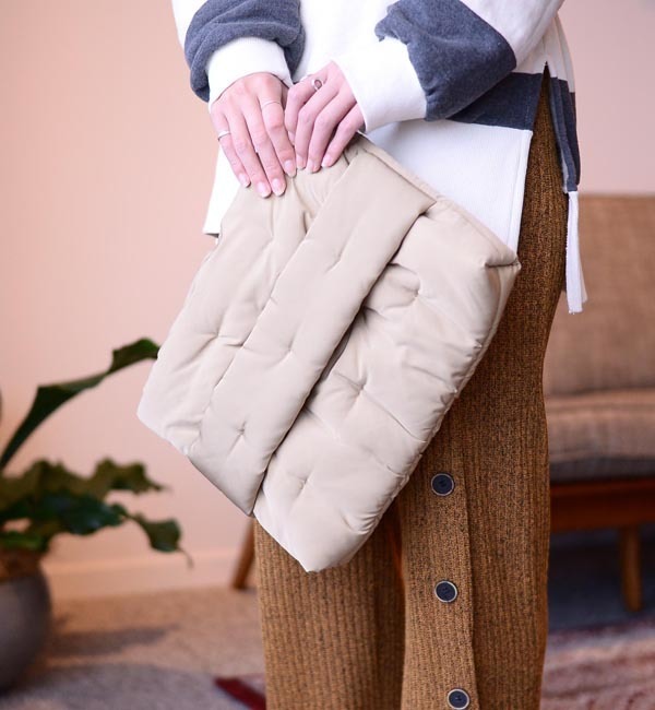 ▼今期トレンドの、ふっくらとしたボリューム感がポイントのショルダーバッグです。ふわふわとした軽い質感で、心地良くお持ちいただけます。ショルダーは取り外し可能なので、ボディに付いたベルトに腕を通して、クラッチバッグとしてもお持ちいただける、2way仕様になっています。長財布はもちろん、500mlのペットボトルやポーチなどもしっかり入り、普段使いしやすいサイズです。▼オススメポイント?今期トレンドのボリューム感?持っているだけで癒されるふわもこ感?ショルダーを外して、クラッチとして持てる2way仕様▼オススメスタイリングペンシルスカート+ニットなどの秋コーデはもちろん、カジュアルスタイルやスポーツMIXコーデにもオススメです。シンプルなスタイルには、持つだけでコーディネートのポイントになってくれます。クラッチとして、抱えて持つのがかわいく見えてオススメです。 ヒッチハイク/HITCH HIKE バッグ|ショルダー・メッセンジャー