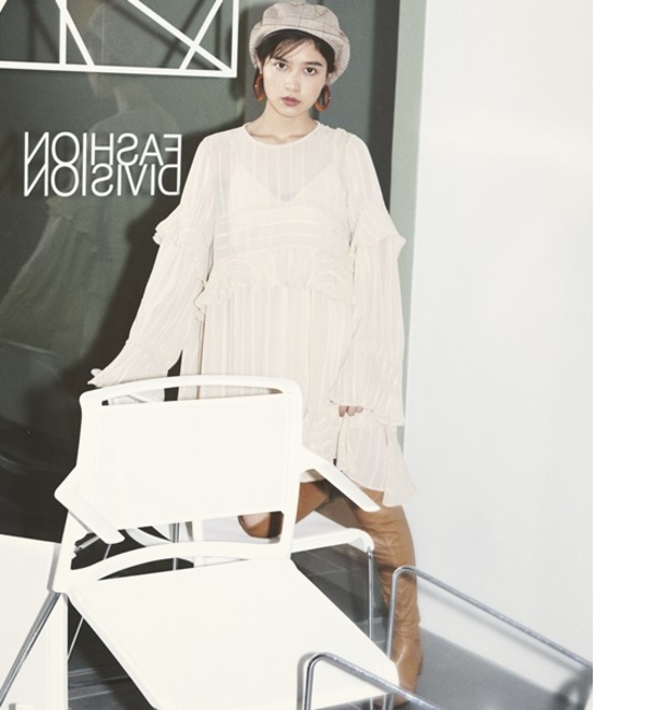 【フリルが可愛らしい大人のガーリーチュニック】表情感のあるフリルを贅沢にあしらったフェミニンなチュニックブラウスの登場。ハイウエストに設定した切り替えや、縦ラインにあしらったラメ糸がすっきりとしたシルエットを叶えます。イレギュラーなヘムラインのデザインが、歩くたびに軽やかになびく女性らしい一着です。肌馴染みが良く透け感がエアリーなブラウスに、ソフトな手触りのシフォン素材のフリルをあしらい立体感を演出しました。今季らしいくすみピンクや、深みのあるグリーン、大人な印象のブラックと、秋冬らしい落ち着いたカラー展開にも注目です。※商品画像はサンプルのため、色味やサイズ等の仕様に変更がある場合がございますので、予めご了承ください。着用モデル:身長175cm、バスト81cm、ウエスト59cm、ヒップ87cm、着用サイズ:F スナイデル/SNIDEL SNIDEL|トップス|シャツ・ブラウス