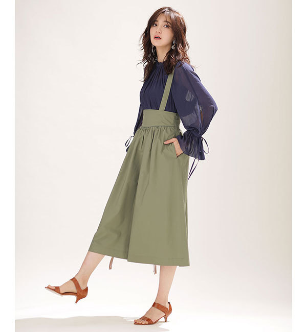 取外しのできるサスペンダーが付いたスカート。ウエストに効かせたギャザーがふんわりとした女性らしいシルエットをメイク。張りのある薄手のタイプライター生地と上品なミモレ丈でサスペンダーを付けても大人っぽく着こなせます。トップスをインした際のバランスにもこだわり、太めのベルトをカーブさせコードレースを挟みました。サスペンダーのありなしでアレンジが楽しめるからオンオフ問わず使えそう。 ・取外しのできるサスペンダーが付いた着こなしの幅が広がるスカート ・ふんわりとした女性らしいシルエットを叶えるウエストギャザー ・大人っぽく着こなせる張りのある薄手のタイプライター生地と上品なミモレ丈 ・トップスをインしてもバランス良く着こなせるウエストデザイン ・ウエストの後ろは細いゴムを数本通しポイントに model: H172cm 着用サイズ:38 ◆nano・universe◆■洗濯表示■液温は40℃を限度とし、手洗いができる 塩素系及び酸素系漂白剤の使用禁止 タンブル乾燥禁止 日陰のつり干しがよい 底面温度110℃を限度としてアイロン仕上げができる 石油系溶剤による弱いドライクリーニングができる 非常に弱い操作によるウェットクリーニングができる■商品注意事項■こちらの商品は水や雨に濡れたり、汗による湿気、乾燥状態での摩擦により、薄い色の衣服などに色移りする可能性がございます。予めご了承いただき、ご使用の際にはご注意くださいますようお願い致します。 ●スタッフレビュースタッフが商品を着用した感想をご紹介します!着心地について、ぜひ参考にしてみてくださいね! <スタッフ・S>身長:158cm 体型:肩幅広め 普段の着用サイズ:3838サイズで丁度良く着られました。ウエストの前部分の幅が広く、苦しくないけれどしっかりウエストマークしてくれるので、身長低めでもバランス良く着られます。 ナノ・ユニバース/nano・universe nano・universe Ladys|スカート|スカート,フレア