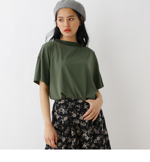 ひんやり快適な接触冷感素材を使用したTシャツ。ゆったりとしたビッグシルエットに太めのリブで切替たネックラインが新鮮です。落ち着きのあるシックなカラー展開で、秋のコーディネートを先取りできる一枚。主に秋に着用いただける商品です。 中国製 オゾック/OZOC OZOC|トップス|Tシャツ・カットソー
