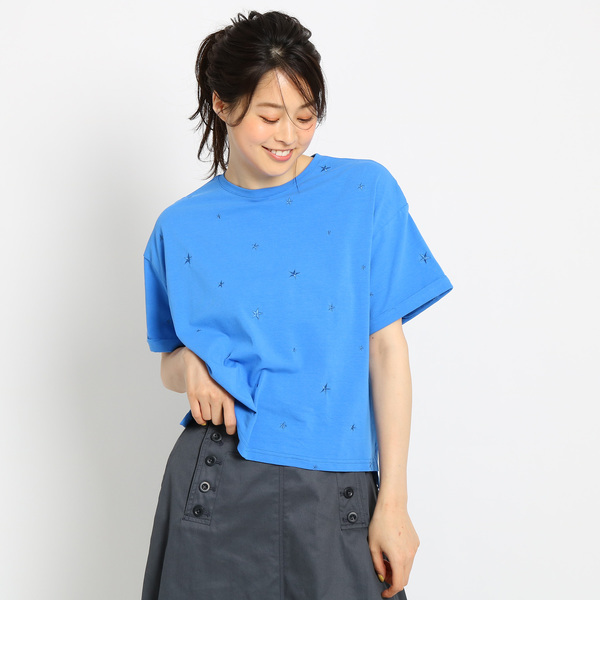星の刺しゅうを散りばめたプルオーバー。身頃が幅広のボックスシルエットが今年らしい1枚です。ドロップショルダーと袖口の折り返のリラックス感がポイント。気楽に着られるデザインはカジュアルスタイルにおすすめです。ホワイト(001)は透け感があるため、インナーの着用をおすすめします。モデル情報:身長175cm B85 W60 H88 着用サイズ:02(M)店舗へのお問い合わせ商品番号:F58-14100主に夏に着用いただける商品です。 中国製 デッサン/Dessin Dessin|トップス|Tシャツ・カットソー